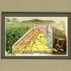Founded in the 1860s, the Arbuckle Coffee Company grew and expanded with 19th century America. It was a staple the cowboys carried with them on the trail, and a commodity commonly found in American homes at the time. The Arbuckle Company made a unique advertising effort in the late 1880’s and began to enclose small decorative trade cards in their packages of coffee. The front of the card contained a colorful image of children, flowers, sports or even a map, while the back of the card had their advertising and some descriptive information. Later these trade cards became so collectible that the company focused on their success and issued them separately as premiums. These charming map cards illustrate beautifully the history and character the lands. Each map shows lakes and rivers, cities and towns, forts, the population, and area in square miles. Each card measures 3 1/4″ x 5 1/4″. The matted size is 8 x 10 inches.