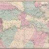 This map is from Johnsons New Illustrated Family Atlas of the World printed in 1870 by A.J. Johnson. Johnson maps are characterized by hand coloring in red and green and distinctive borders, including iron scrollwork and a Celtic design. This map is colored in bright pastels. Major cities are identified as well as rail lines, major roads,lakes, rivers and mountains. ‘