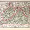 This detailed map of Virginia was printed in the “Peoples Family Atlas of the World,” published in 1889. This map shows a great deal of topographical information, including lakes, mountains, and rivers. This map has all counties outlined in green and state boundaries outlined in pink. Railroad lines are also shown. ‘