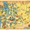 This charming antique pictorial map was published in 1935 by the famous mapmaker & illustrator, Ruth Taylor (White). These illustrated maps came from the atlas, “Our U.S.A – A Gay Geography,” with text by Frank Taylor & the maps done by Ruth Taylor. Ruth Taylors maps have become increasingly rare. Her whimsical maps are bold, colorful, and full of life; showing the local feel, cultural stereotypes, industries and activities of the area. These maps have become very difficult to find and would be a great addition to any map collection.