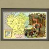 Founded in the 1860s, the Arbuckle Coffee Company grew and expanded with 19th century America. It was a staple the cowboys carried with them on the trail, and a commodity commonly found in American homes at the time. The Arbuckle Company made a unique advertising effort in the late 1880’s and began to enclose small decorative trade cards in their packages of coffee. The front of the card contained a colorful image of children, flowers, sports or even a map, while the back of the card had their advertising and some descriptive information. Later these trade cards became so collectible that the company focused on their success and issued them separately as premiums. These charming map cards illustrate beautifully the history and character the lands. Each map shows lakes and rivers, cities and towns, forts, the population, and area in square miles. Each card measures 3 1/4″ x 5 1/4″. The matted size is 8 x 10 inches.