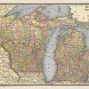 George F. Cram produced this map of Michigan and Wisconsin for Crams Unrivaled Atlas of the World in 1889. Counties, cities, towns, railroads, topographical features, and an inset map of Isle Royale are illustrated on this map.