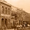 15th Street in Denver. Many very early Denver businesses. See bear skins hanging.