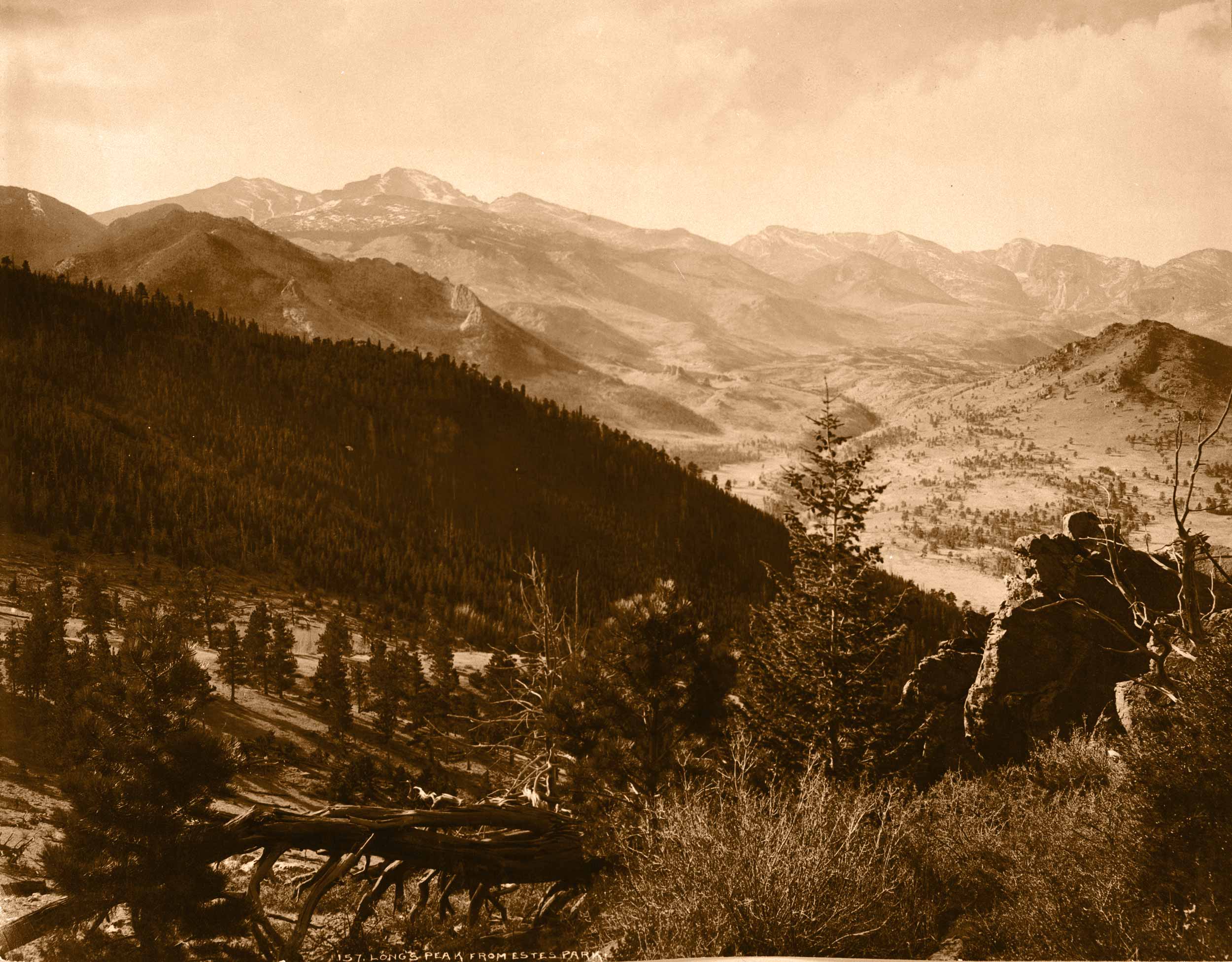 View of Estes Park area showing Longs Peak.