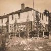 Men and women are photographed in front of the Pine Log Inn, by Lake Eldora.