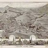 Panoramic city maps, popular at the turn of the century, depicted U.S. towns from the perspective that came to be known as bird’s-eye maps. These non-photographic old maps, depicted from oblique angles, showed street patterns, buildings and the predominant surrounding landscape in perspective. Going to great lengths to make these maps, artists would often climb surrounding hills or trees, sometimes even building platforms from which to achieve the bird’s eye” perspective. They also used to take rides in hot air balloons in order to get the proper perspective. To bolster sales of these old panoramic city maps, the artists would often choke town harbors full of ships, include proposed building developments and depict a vivacious, bustling industry. Historically interesting and beautifully drawn, it is no wonder these old panoramic city maps are making a popular comeback. Bring the spirit of your town’s history back to life with these stunning old bird’s-eye maps.”