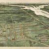 Panoramic city maps, popular at the turn of the century, depicted U.S. towns from the perspective that came to be known as bird’s-eye maps. These non-photographic old maps, depicted from oblique angles, showed street patterns, buildings and the predominant surrounding landscape in perspective. Going to great lengths to make these maps, artists would often climb surrounding hills or trees, sometimes even building platforms from which to achieve the bird’s eye” perspective. They also used to take rides in hot air balloons in order to get the proper perspective. To bolster sales of these old panoramic city maps, the artists would often choke town harbors full of ships, include proposed building developments and depict a vivacious, bustling industry. Historically interesting and beautifully drawn, it is no wonder these old panoramic city maps are making a popular comeback. Bring the spirit of your town’s history back to life with these stunning old bird’s-eye maps.”
