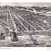 Panoramic city maps, popular at the turn of the century, depicted U.S. towns from the perspective that came to be known as bird’s-eye maps. These non-photographic old maps, depicted from oblique angles, showed street patterns, buildings and the predominant surrounding landscape in perspective. Going to great lengths to make these maps, artists would often climb surrounding hills or trees, sometimes even building platforms from which to achieve the bird’s eye” perspective. They also used to take rides in hot air balloons in order to get the proper perspective. To bolster sales of these old panoramic city maps, the artists would often choke town harbors full of ships, include proposed building developments and depict a vivacious, bustling industry. Historically interesting and beautifully drawn, it is no wonder these old panoramic city maps are making a popular comeback. Bring the spirit of your town’s history back to life with these stunning old bird’s-eye maps.”