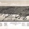 Panoramic city maps, popular at the turn of the century, depicted U.S. towns from the perspective that came to be known as bird’s-eye maps. These non-photographic old maps, depicted from oblique angles, showed street patterns, buildings and the predominant surrounding landscape in perspective. Going to great lengths to make these maps, artists would often climb surrounding hills or trees, sometimes even building platforms from which to achieve the bird’s eye” perspective. They also used to take rides in hot air balloons in order to get the proper perspective. To bolster sales of these old panoramic city maps, the artists would often choke town harbors full of ships, include proposed building developments and depict a vivacious, bustling industry. Historically interesting and beautifully drawn, it is no wonder these old panoramic city maps are making a popular comeback. Bring the spirit of your town’s history back to life with these stunning old bird’s-eye maps.”
