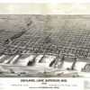 Panoramic city maps, popular at the turn of the century, depicted U.S. towns from the perspective that came to be known as bird’s-eye maps. These non-photographic old maps, depicted from oblique angles, showed street patterns, buildings and the predominant surrounding landscape in perspective. Going to great lengths to make these maps, artists would often climb surrounding hills or trees, sometimes even building platforms from which to achieve the bird’s eye” perspective. They also used to take rides in hot air balloons in order to get the proper perspective. To bolster sales of these old panoramic city maps, the artists would often choke town harbors full of ships, include proposed building developments and depict a vivacious, bustling industry. Historically interesting and beautifully drawn, it is no wonder these old panoramic city maps are making a popular comeback. Bring the spirit of your town’s history back to life with these stunning old bird’s-eye maps.”