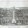 Panoramic city maps, popular at the turn of the century, depicted U.S. towns from the perspective that came to be known as bird’s-eye maps. These non-photographic old maps, depicted from oblique angles, showed street patterns, buildings and the predominant surrounding landscape in perspective. Going to great lengths to make these maps, artists would often climb surrounding hills or trees, sometimes even building platforms from which to achieve the bird’s eye” perspective. They also used to take rides in hot air balloons in order to get the proper perspective. To bolster sales of these old panoramic city maps, the artists would often choke town harbors full of ships, include proposed building developments and depict a vivacious, bustling industry. Historically interesting and beautifully drawn, it is no wonder these old panoramic city maps are making a popular comeback. Bring the spirit of your town’s history back to life with these stunning old bird’s-eye maps.”