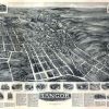 Panoramic city maps, popular at the turn of the century, depicted U.S. towns from the perspective that came to be known as bird’s-eye maps. These non-photographic old maps, depicted from oblique angles, showed street patterns, buildings and the predominant surrounding landscape in perspective. Going to great lengths to make these maps, artists would often climb surrounding hills or trees, sometimes even building platforms from which to achieve the bird’s eye” perspective. They also used to take rides in hot air balloons in order to get the proper perspective. To bolster sales of these old panoramic city maps, the artists would often choke town harbors full of ships, include proposed building developments and depict a vivacious, bustling industry. Historically interesting and beautifully drawn, it is no wonder these old panoramic city maps are making a popular comeback. Bring the spirit of your town’s history back to life with these stunning old bird’s-eye maps.”