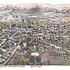 Panoramic city maps, popular at the turn of the century, depicted U.S. towns from the perspective that came to be known as bird’s-eye maps. These non-photographic old maps, depicted from oblique angles, showed street patterns, buildings and the predominant surrounding landscape in perspective. Going to great lengths to make these maps, artists would often climb surrounding hills or trees, sometimes even building platforms from which to achieve the bird’s eye” perspective. They also used to take rides in hot air balloons in order to get the proper perspective. To bolster sales of these old panoramic city maps, the artists would often choke town harbors full of ships, include proposed building developments and depict a vivacious, bustling industry. Historically interesting and beautifully drawn, it is no wonder these old panoramic city maps are making a popular comeback. Bring the spirit of your town’s history back to life with these stunning old bird’s-eye maps.”