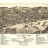 Panoramic city maps, popular at the turn of the century, depicted U.S. towns from the perspective that came to be known as bird’s-eye maps. These non-photographic old maps, depicted from oblique angles, showed street patterns, buildings and the predominant surrounding landscape in perspective. Going to great lengths to make these maps, artists would often climb surrounding hills or trees, sometimes even building platforms from which to achieve the bird’s eye” perspective. They also used to take rides in hot air balloons in order to get the proper perspective. To bolster sales of these old panoramic city maps, the artists would often choke town harbors full of ships, include proposed building developments and depict a vivacious, bustling industry. Historically interesting and beautifully drawn, it is no wonder these old panoramic city maps are making a popular comeback. Bring the spirit of your town’s history back to life with these stunning old bird’s-eye maps.”