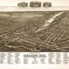 Panoramic city maps, popular at the turn of the century, depicted U.S. towns from the perspective that came to be known as bird’s-eye maps. These non-photographic old maps, depicted from oblique angles, showed street patterns, buildings and the predominant surrounding landscape in perspective. Going to great lengths to make these maps, artists would often climb surrounding hills or trees, sometimes even building platforms from which to achieve the bird’s eye” perspective. They also used to take rides in hot air balloons in order to get the proper perspective. To bolster sales of these old panoramic city maps, the artists would often choke town harbors full of ships, include proposed building developments and depict a vivacious, bustling industry. Historically interesting and beautifully drawn, it is no wonder these old panoramic city maps are making a popular comeback. Bring the spirit of your town’s history back to life with these stunning old bird’s-eye maps.”
