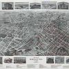 Panoramic city maps, popular at the turn of the century, depicted U.S. towns from the perspective that came to be known as bird’s-eye maps. These non-photographic old maps, depicted from oblique angles, showed street patterns, buildings and the predominant surrounding landscape in perspective. Going to great lengths to make these maps, artists would often climb surrounding hills or trees, sometimes even building platforms from which to achieve the bird’s eye” perspective. They also used to take rides in hot air balloons in order to get the proper perspective. To bolster sales of these old panoramic city maps, the artists would often choke town harbors full of ships, include proposed building developments and depict a vivacious, bustling industry. Historically interesting and beautifully drawn, it is no wonder these old panoramic city maps are making a popular comeback. Bring the spirit of your town’s history back to life with these stunning old bird’s-eye maps.”