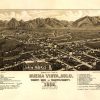 Perspective map of Buena Vista, CO not drawn to scale. Oriented with north toward the upper right. Includes illus. and index to points of interest.