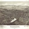 Panoramic city maps, popular at the turn of the century, depicted U.S. towns from the perspective that came to be known as bird’s-eye maps. These non-photographic old maps, depicted from oblique angles, showed street patterns, buildings and the predominant surrounding landscape in perspective. Going to great lengths to make these maps, artists would often climb surrounding hills or trees, sometimes even building platforms from which to achieve the bird’s eye” perspective. They also used to take rides in hot air balloons in order to get the proper perspective. To bolster sales of these old panoramic city maps, the artists would often choke town harbors full of ships, include proposed building developments and depict a vivacious, bustling industry. Historically interesting and beautifully drawn, it is no wonder these old panoramic city maps are making a popular comeback. Bring the spirit of your town’s history back to life with these stunning old bird’s-eye maps.”