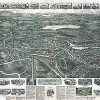 Panoramic city maps, popular at the turn of the century, depicted U.S. towns from the perspective that came to be known as bird’s-eye maps. These non-photographic old maps, depicted from oblique angles, showed street patterns, buildings and the predominant surrounding landscape in perspective. Going to great lengths to make these maps, artists would often climb surrounding hills or trees, sometimes even building platforms from which to achieve the bird’s eye” perspective. They also used to take rides in hot air balloons in order to get the proper perspective. To bolster sales of these old panoramic city maps, the artists would often choke town harbors full of ships, include proposed building developments and depict a vivacious, bustling industry. Historically interesting and beautifully drawn, it is no wonder these old panoramic city maps are making a popular comeback. Bring the spirit of your town’s history back to life with these stunning old bird’s-eye maps.”