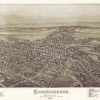 Panoramic city maps, popular at the turn of the century, depicted U.S. towns from the perspective that came to be known as bird’s-eye maps. These non-photographic old maps, depicted from oblique angles, showed street patterns, buildings and the predominant surrounding landscape in perspective. Going to great lengths to make these maps, artists would often climb surrounding hills or trees, sometimes even building platforms from which to achieve the bird’s eye” perspective. They also used to take rides in hot air balloons in order to get the proper perspective. To bolster sales of these old panoramic city maps, the artists would often choke town harbors full of ships, include proposed building developments and depict a vivacious, bustling industry. Historically interesting and beautifully drawn, it is no wonder these old panoramic city maps are making a popular comeback. Bring the spirit of your town’s history back to life with these stunning old bird’s-eye maps.”