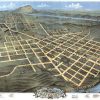 Panoramic city maps, popular at the turn of the century, depicted U.S. towns from the perspective that came to be known as bird’s-eye maps. These non-photographic old maps, depicted from oblique angles, showed street patterns, buildings and the predominant surrounding landscape in perspective. Going to great lengths to make these maps, artists would often climb surrounding hills or trees, sometimes even building platforms from which to achieve the bird’s eye” perspective. They also used to take rides in hot air balloons in order to get the proper perspective. To bolster sales of these old panoramic city maps, the artists would often choke town harbors full of ships, include proposed building developments and depict a vivacious, bustling industry. Historically interesting and beautifully drawn, it is no wonder these old panoramic city maps are making a popular comeback. Bring the spirit of your town’s history back to life with these stunning old bird’s-eye maps.”