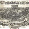 Panoramic city maps, popular at the turn of the century, depicted U.S. towns from the perspective that came to be known as bird’s-eye maps. These non-photographic old maps, depicted from oblique angles, showed street patterns, buildings and the predominant surrounding landscape in perspective. Going to great lengths to make these maps, artists would often climb surrounding hills or trees, sometimes even building platforms from which to achieve the bird’s eye” perspective. They also used to take rides in hot air balloons in order to get the proper perspective. To bolster sales of these old panoramic city maps, the artists would often choke town harbors full of ships, include proposed building developments and depict a vivacious, bustling industry. Historically interesting and beautifully drawn, it is no wonder these old panoramic city maps are making a popular comeback. Bring the spirit of your town’s history back to life with these stunning old bird’s-eye maps.”