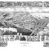Panoramic city maps, popular at the turn of the century, depicted U.S. towns from the perspective that came to be known as bird’s-eye maps. These non-photographic old maps, depicted from oblique angles, showed street patterns, buildings and the predominant surrounding landscape in perspective. Going to great lengths to make these maps, artists would often climb surrounding hills or trees, sometimes even building platforms from which to achieve the bird’s eye” perspective. They also used to take rides in hot air balloons in order to get the proper perspective. To bolster sales of these old panoramic city maps, the artists would often choke town harbors full of ships, include proposed building developments and depict a vivacious, bustling industry. Historically interesting and beautifully drawn, it is no wonder these old panoramic city maps are making a popular comeback. Bring the spirit of your town’s history back to life with these stunning old bird’s-eye maps.”