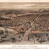 Panoramic city maps, popular at the turn of the century, depicted U.S. towns from the perspective that came to be known as bird’s-eye maps. These non-photographic old maps, depicted from oblique angles, showed street patterns, buildings and the predominant surrounding landscape in perspective. Going to great lengths to make these maps, artists would often climb surrounding hills or trees, sometimes even building platforms from which to achieve the bird’s eye” perspective. They also used to take rides in hot air balloons in order to get the proper perspective. To bolster sales of these old panoramic city maps, the artists would often choke town harbors full of ships, include proposed building developments and depict a vivacious, bustling industry. Historically interesting and beautifully drawn, it is no wonder these old panoramic city maps are making a popular comeback. Bring the spirit of your town’s history back to life with these stunning old bird’s-eye maps.”