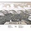 Panoramic city maps, popular at the turn of the century, depicted U.S. towns from the perspective that came to be known as bird’s-eye maps. These non-photographic old maps, depicted from oblique angles, showed street patterns, buildings and the predominant surrounding landscape in perspective. Going to great lengths to make these maps, artists would often climb surrounding hills or trees, sometimes even building platforms from which to achieve the bird’s eye” perspective. They also used to take rides in hot air balloons in order to get the proper perspective. To bolster sales of these old panoramic city maps, the artists would often choke town harbors full of ships, include proposed building developments and depict a vivacious, bustling industry. Historically interesting and beautifully drawn, it is no wonder these old panoramic city maps are making a popular comeback. Bring the spirit of your town’s history back to life with these stunning old bird’s-eye maps.”
