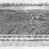 Panoramic city maps, popular at the turn of the century, depicted U.S. towns from the perspective that came to be known as bird’s-eye maps. These non-photographic old maps, depicted from oblique angles, showed street patterns, buildings and the predominant surrounding landscape in perspective. Going to great lengths to make these maps, artists would often climb surrounding hills or trees, sometimes even building platforms from which to achieve the bird’s eye” perspective. They also used to take rides in hot air balloons in order to get the proper perspective. To bolster sales of these old panoramic city maps, the artists would often choke town harbors full of ships, include proposed building developments and depict a vivacious, bustling industry. Historically interesting and beautifully drawn, it is no wonder these old panoramic city maps are making a popular comeback. Bring the spirit of your town’s history back to life with these stunning old bird’s-eye maps.”