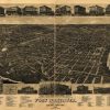 Panoramic city maps, popular at the turn of the century, depicted U.S. towns from the perspective that came to be known as bird’s-eye maps. These non-photographic old maps, depicted from oblique angles, showed street patterns, buildings and the predominant surrounding landscape in perspective. Going to great lengths to make these maps, artists would often climb surrounding hills or trees, sometimes even building platforms from which to achieve the bird’s eye” perspective. They also used to take rides in hot air balloons in order to get the proper perspective. To bolster sales of these old panoramic city maps, the artists would often choke town harbors full of ships, include proposed building developments and depict a vivacious, bustling industry. Historically interesting and beautifully drawn, it is no wonder these old panoramic city maps are making a popular comeback. Bring the spirit of your town’s history back to life with these stunning old bird’s-eye maps.”