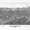 Panoramic city maps, popular at the turn of the century, depicted U.S. towns from the perspective that came to be known as bird’s-eye maps. These non-photographic old maps, depicted from oblique angles, showed street patterns, buildings and the predominant surrounding landscape in perspective. Going to great lengths to make these maps, artists would often climb surrounding hills or trees, sometimes even building platforms from which to achieve the bird’s eye” perspective. They also used to take rides in hot air balloons in order to get the proper perspective. To bolster sales of these old panoramic city maps, the artists would often choke town harbors full of ships, include proposed building developments and depict a vivacious, bustling industry. Historically interesting and beautifully drawn, it is no wonder these old panoramic city maps are making a popular comeback. Bring the spirit of your town’s history back to life with these stunning old bird’s-eye maps.”