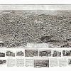 Panoramic city maps, popular at the turn of the century, depicted U.S. towns from the perspective that came to be known as bird’s-eye maps. These non-photographic old maps, depicted from oblique angles, showed street patterns, buildings and the predominant surrounding landscape in perspective. Going to great lengths to make these maps, artists would often climb surrounding hills or trees, sometimes even building platforms from which to achieve the bird’s eye” perspective. They also used to take rides in hot air balloons in order to get the proper perspective. To bolster sales of these old panoramic city maps, the artists would often choke town harbors full of ships, include proposed building developments and depict a vivacious, bustling industry. Historically interesting and beautifully drawn, it is no wonder these old panoramic city maps are making a popular comeback. Bring the spirit of your town’s history back to life with these stunning old bird’s-eye maps.”