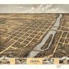 Panoramic city maps, popular at the turn of the century, depicted U.S. towns from the perspective that came to be known as bird’s-eye maps. These non-photographic old maps, depicted from oblique angles, showed street patterns, buildings and the predominant surrounding landscape in perspective. Going to great lengths to make these maps, artists would often climb surrounding hills or trees, sometimes even building platforms from which to achieve the bird’s eye” perspective. They also used to take rides in hot air balloons in order to get the proper perspective. To bolster sales of these old panoramic city maps, the artists would often choke town harbors full of ships, include proposed building developments and depict a vivacious, bustling industry. Historically interesting and beautifully drawn, it is no wonder these old panoramic city maps are making a popular comeback. Bring the spirit of your town’s history back to life with these stunning old bird’s-eye maps.”