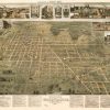 Panoramic city maps, popular at the turn of the century, depicted U.S. towns from the perspective that came to be known as bird’s-eye maps. These non-photographic old maps, depicted from oblique angles, showed street patterns, buildings and the predominant surrounding landscape in perspective. Going to great lengths to make these maps, artists would often climb surrounding hills or trees, sometimes even building platforms from which to achieve the bird’s eye” perspective. They also used to take rides in hot air balloons in order to get the proper perspective. To bolster sales of these old panoramic city maps, the artists would often choke town harbors full of ships, include proposed building developments and depict a vivacious, bustling industry. Historically interesting and beautifully drawn, it is no wonder these old panoramic city maps are making a popular comeback. Bring the spirit of your town’s history back to life with these stunning old bird’s-eye maps.”