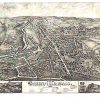 Panoramic city maps, popular at the turn of the century, depicted U.S. towns from the perspective that came to be known as bird’s-eye maps. These non-photographic old maps, depicted from oblique angles, showed street patterns, buildings and the predominant surrounding landscape in perspective. Going to great lengths to make these maps, artists would often climb surrounding hills or trees, sometimes even building platforms from which to achieve the bird’s eye” perspective. They also used to take rides in hot air balloons in order to get the proper perspective. To bolster sales of these old panoramic city maps, the artists would often choke town harbors full of ships, include proposed building developments and depict a vivacious, bustling industry. Historically interesting and beautifully drawn, it is no wonder these old panoramic city maps are making a popular comeback. Bring the spirit of your town’s history back to life with these stunning old bird’s-eye maps.”
