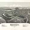 Panoramic city maps, popular at the turn of the century, depicted U.S. towns from the perspective that came to be known as bird’s-eye maps. These non-photographic old maps, depicted from oblique angles, showed street patterns, buildings and the predominant surrounding landscape in perspective. Going to great lengths to make these maps, artists would often climb surrounding hills or trees, sometimes even building platforms from which to achieve the bird’s eye” perspective. They also used to take rides in hot air balloons in order to get the proper perspective. To bolster sales of these old panoramic city maps, the artists would often choke town harbors full of ships, include proposed building developments and depict a vivacious, bustling industry. Historically interesting and beautifully drawn, it is no wonder these old panoramic city maps are making a popular comeback. Bring the spirit of your town’s history back to life with these stunning old bird’s-eye maps.”