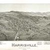 Panoramic city maps, popular at the turn of the century, depicted U.S. towns from the perspective that came to be known as bird’s-eye maps. These non-photographic old maps, depicted from oblique angles, showed street patterns, buildings and the predominant surrounding landscape in perspective. Going to great lengths to make these maps, artists would often climb surrounding hills or trees, sometimes even building platforms from which to achieve the bird’s eye” perspective. They also used to take rides in hot air balloons in order to get the proper perspective. To bolster sales of these old panoramic city maps, the artists would often choke town harbors full of ships, include proposed building developments and depict a vivacious, bustling industry. Historically interesting and beautifully drawn, it is no wonder these old panoramic city maps are making a popular comeback. Bring the spirit of your town’s history back to life with these stunning old bird’s-eye maps.”