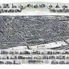 Panoramic city maps, popular at the turn of the century, depicted U.S. towns from the perspective that came to be known as bird’s-eye maps. These non-photographic old maps, depicted from oblique angles, showed street patterns, buildings and the predominant surrounding landscape in perspective. Going to great lengths to make these maps, artists would often climb surrounding hills or trees, sometimes even building platforms from which to achieve the bird’s eye” perspective. They also used to take rides in hot air balloons in order to get the proper perspective. To bolster sales of these old panoramic city maps, the artists would often choke town harbors full of ships, include proposed building developments and depict a vivacious, bustling industry. Historically interesting and beautifully drawn, it is no wonder these old panoramic city maps are making a popular comeback. Bring the spirit of your town’s history back to life with these stunning old bird’s-eye maps.”