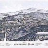 Panoramic city maps, popular at the turn of the century, depicted U.S. towns from the perspective that came to be known as bird’s-eye maps. These non-photographic old maps, depicted from oblique angles, showed street patterns, buildings and the predominant surrounding landscape in perspective. Going to great lengths to make these maps, artists would often climb surrounding hills or trees, sometimes even building platforms from which to achieve the bird’s eye” perspective. They also used to take rides in hot air balloons in order to get the proper perspective. To bolster sales of these old panoramic city maps, the artists would often choke town harbors full of ships, include proposed building developments and depict a vivacious, bustling industry. Historically interesting and beautifully drawn, it is no wonder these old panoramic city maps are making a popular comeback. Bring the spirit of your town’s history back to life with these stunning old bird’s-eye maps.”