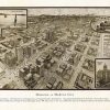 Panoramic city maps, popular at the turn of the century, depicted U.S. towns from the perspective that came to be known as bird’s-eye maps. These non-photographic old maps, depicted from oblique angles, showed street patterns, buildings and the predominant surrounding landscape in perspective. Going to great lengths to make these maps, artists would often climb surrounding hills or trees, sometimes even building platforms from which to achieve the bird’s eye” perspective. They also used to take rides in hot air balloons in order to get the proper perspective. To bolster sales of these old panoramic city maps, the artists would often choke town harbors full of ships, include proposed building developments and depict a vivacious, bustling industry. Historically interesting and beautifully drawn, it is no wonder these old panoramic city maps are making a popular comeback. Bring the spirit of your town’s history back to life with these stunning old bird’s-eye maps.”