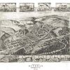Panoramic city maps, popular at the turn of the century, depicted U.S. towns from the perspective that came to be known as bird’s-eye maps. These non-photographic old maps, depicted from oblique angles, showed street patterns, buildings and the predominant surrounding landscape in perspective. Going to great lengths to make these maps, artists would often climb surrounding hills or trees, sometimes even building platforms from which to achieve the bird’s eye” perspective. They also used to take rides in hot air balloons in order to get the proper perspective. To bolster sales of these old panoramic city maps, the artists would often choke town harbors full of ships, include proposed building developments and depict a vivacious, bustling industry. Historically interesting and beautifully drawn, it is no wonder these old panoramic city maps are making a popular comeback. Bring the spirit of your town’s history back to life with these stunning old bird’s-eye maps.”