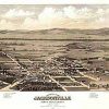 Panoramic city maps, popular at the turn of the century, depicted U.S. towns from the perspective that came to be known as bird’s-eye maps. These non-photographic old maps, depicted from oblique angles, showed street patterns, buildings and the predominant surrounding landscape in perspective. Going to great lengths to make these maps, artists would often climb surrounding hills or trees, sometimes even building platforms from which to achieve the bird’s eye” perspective. They also used to take rides in hot air balloons in order to get the proper perspective. To bolster sales of these old panoramic city maps, the artists would often choke town harbors full of ships, include proposed building developments and depict a vivacious, bustling industry. Historically interesting and beautifully drawn, it is no wonder these old panoramic city maps are making a popular comeback. Bring the spirit of your town’s history back to life with these stunning old bird’s-eye maps.”