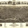Panoramic city maps, popular at the turn of the century, depicted U.S. towns from the perspective that came to be known as bird’s-eye maps. These non-photographic old maps, depicted from oblique angles, showed street patterns, buildings and the predominant surrounding landscape in perspective. Going to great lengths to make these maps, artists would often climb surrounding hills or trees, sometimes even building platforms from which to achieve the bird’s eye” perspective. They also used to take rides in hot air balloons in order to get the proper perspective. To bolster sales of these old panoramic city maps, the artists would often choke town harbors full of ships, include proposed building developments and depict a vivacious, bustling industry. Historically interesting and beautifully drawn, it is no wonder these old panoramic city maps are making a popular comeback. Bring the spirit of your town’s history back to life with these stunning old bird’s-eye maps.”