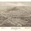 Panoramic city maps, popular at the turn of the century, depicted U.S. towns from the perspective that came to be known as bird’s-eye maps. These non-photographic old maps, depicted from oblique angles, showed street patterns, buildings and the predominant surrounding landscape in perspective. Going to great lengths to make these maps, artists would often climb surrounding hills or trees, sometimes even building platforms from which to achieve the bird’s eye” perspective. They also used to take rides in hot air balloons in order to get the proper perspective. To bolster sales of these old panoramic city maps, the artists would often choke town harbors full of ships, include proposed building developments and depict a vivacious, bustling industry. Historically interesting and beautifully drawn, it is no wonder these old panoramic city maps are making a popular comeback. Bring the spirit of your town’s history back to life with these stunning old bird’s-eye maps.”