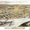Panoramic city maps, popular at the turn of the century, depicted U.S. towns from the perspective that came to be known as bird’s-eye maps. These non-photographic old maps, depicted from oblique angles, showed street patterns, buildings and the predominant surrounding landscape in perspective. Going to great lengths to make these maps, artists would often climb surrounding hills or trees, sometimes even building platforms from which to achieve the bird’s eye” perspective. They also used to take rides in hot air balloons in order to get the proper perspective. To bolster sales of these old panoramic city maps, the artists would often choke town harbors full of ships, include proposed building developments and depict a vivacious, bustling industry. Historically interesting and beautifully drawn, it is no wonder these old panoramic city maps are making a popular comeback. Bring the spirit of your town’s history back to life with these stunning old bird’s-eye maps.”