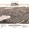 Panoramic city maps, popular at the turn of the century, depicted U.S. towns from the perspective that came to be known as bird’s-eye maps. These non-photographic old maps, depicted from oblique angles, showed street patterns, buildings and the predominant surrounding landscape in perspective. Going to great lengths to make these maps, artists would often climb surrounding hills or trees, sometimes even building platforms from which to achieve the bird’s eye” perspective. They also used to take rides in hot air balloons in order to get the proper perspective. To bolster sales of these old panoramic city maps, the artists would often choke town harbors full of ships, include proposed building developments and depict a vivacious, bustling industry. Historically interesting and beautifully drawn, it is no wonder these old panoramic city maps are making a popular comeback. Bring the spirit of your town’s history back to life with these stunning old bird’s-eye maps.”