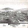 Panoramic city maps, popular at the turn of the century, depicted U.S. towns from the perspective that came to be known as bird’s-eye maps. These non-photographic old maps, depicted from oblique angles, showed street patterns, buildings and the predominant surrounding landscape in perspective. Going to great lengths to make these maps, artists would often climb surrounding hills or trees, sometimes even building platforms from which to achieve the bird’s eye” perspective. They also used to take rides in hot air balloons in order to get the proper perspective. To bolster sales of these old panoramic city maps, the artists would often choke town harbors full of ships, include proposed building developments and depict a vivacious, bustling industry. Historically interesting and beautifully drawn, it is no wonder these old panoramic city maps are making a popular comeback. Bring the spirit of your town’s history back to life with these stunning old bird’s-eye maps.”