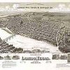 Panoramic city maps, popular at the turn of the century, depicted U.S. towns from the perspective that came to be known as bird’s-eye maps. These non-photographic old maps, depicted from oblique angles, showed street patterns, buildings and the predominant surrounding landscape in perspective. Going to great lengths to make these maps, artists would often climb surrounding hills or trees, sometimes even building platforms from which to achieve the bird’s eye” perspective. They also used to take rides in hot air balloons in order to get the proper perspective. To bolster sales of these old panoramic city maps, the artists would often choke town harbors full of ships, include proposed building developments and depict a vivacious, bustling industry. Historically interesting and beautifully drawn, it is no wonder these old panoramic city maps are making a popular comeback. Bring the spirit of your town’s history back to life with these stunning old bird’s-eye maps.”