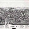Panoramic city maps, popular at the turn of the century, depicted U.S. towns from the perspective that came to be known as bird’s-eye maps. These non-photographic old maps, depicted from oblique angles, showed street patterns, buildings and the predominant surrounding landscape in perspective. Going to great lengths to make these maps, artists would often climb surrounding hills or trees, sometimes even building platforms from which to achieve the bird’s eye” perspective. They also used to take rides in hot air balloons in order to get the proper perspective. To bolster sales of these old panoramic city maps, the artists would often choke town harbors full of ships, include proposed building developments and depict a vivacious, bustling industry. Historically interesting and beautifully drawn, it is no wonder these old panoramic city maps are making a popular comeback. Bring the spirit of your town’s history back to life with these stunning old bird’s-eye maps.”